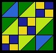 Sieht man sich den Einzelblock einmal an, dann sieht man 3×3 Quadrate, die ihrerseits nochmal unterteilt sind, entweder diagonal in zwei Dreiecke oder horizontal und vertikal in vier weitere Quadrate.