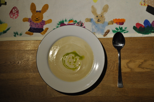 Die Blumenkohlsuppe schmeckt – Überraschung – nach Blumenkohl. Das ganze Haus riecht ebenfalls etwas streng danach und ich frage mich, ob ich wirklich in diesem Jahr Blumenkohl anpflanzen will, schließlich muss er dann ja auch gegessen werden! Das Öl gibt dem ohnehin leicht bitteren Geschmack der Suppe eine deutlich bitterere Note.