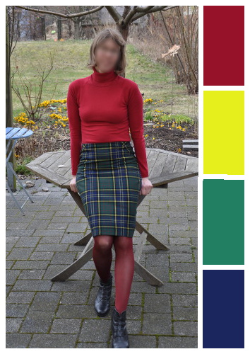 Ich hätte ja auch Bilder aus dem Archiv verwenden können, aber ich wollte auch gerne etwas Neues zum Thema fabrizieren. Mein grünes Kleidungsstück ist nur vorwiegend grün, das Schottenkaro enthält auch noch eine Menge Blau, Gelb und ein wenig Rot. Das passt, denn in der Natur haben wir grün ja auch nur selten isoliert stehen.