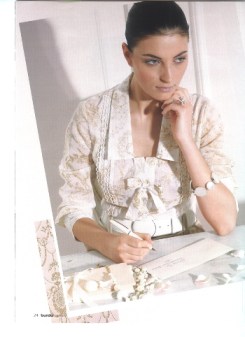 Ich habe die Spitze und die Schleifchen weggelassen, und statt dessen 15 (!) schöne Knöpfe verwendet.