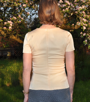 Beim rückwärtigen Halsausschnitt musste ich massiv anpassen. Ich weiß nicht, ob das an meiner Figur oder am Schnitt oder schlicht und ergreifend an meinen (übertriebenen?) Ansprüchen an die Passform liegt. Aber einen Ausschnitt, der hinten fast 4 cm absteht finde ich persönlich inakzeptabel. Ich habe die Ausschnittkante um 3 cm tiefer gelegt, rechts und links jeweils 1,5 cm in Abnähern versteckt und den Rest in der rückwärtigen Mitte im Reißverschluss verschwinden lassen. A propos Reißverschluss: Natürlich war der erste Versuch beim Einsetzen auf Anhieb perfekt und ebenfalls natürlich musste ich dann nach dem Anpassen des Ausschnittes 3 mal wieder auftrennen, bis die Schößchen-Nähte halbwegs akzeptabel aneinander passten. Und was lerne ich daraus? Beim nächsten Mal wird erst der Halsausschnitt angepasst und danach der Reißverschluss eingesetzt!