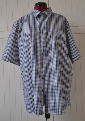 Dann gibt es noch dieses Oberhemd, das etwas enger gemacht werden sollte und am Kragen nicht richtig sitzt. Es war als Prototyp einer Hemdenkollektion gedacht, aber da muss noch eine Menge angepasst werden. Aufwändig.