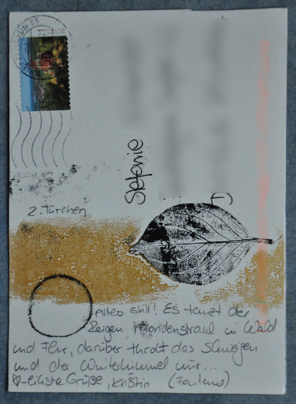 Heute schickt uns Kristin einen Blätterreigen mit einem Winterhimmel voller Mondstaub, der hier etwas Ockerfarben aussieht, in Wirklichkeit aber golden ist. Dazu eine Gedichtzeile von Fontane. Vielen Dank, liebe Christin