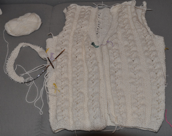 Die zweite Jacke ist auch noch nicht zusammengenäht, sie läuft ohnehin „außer Konkurrenz“. Durch das viele Aufribbeln ist mir mein Strickmojo ein bisschen abhanden gekommen. Bis zum Finale der Herzen am 2.Mai sind es ja noch vier Wochen, bis dahin werde ich schon noch fertig.