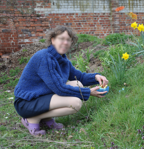 Bei uns ist es bei weitem nicht so warm, wie bei Gastgeberin Monika, die Baumblüten stecken alle noch in den Knospen und der Wind ist eisig. Da kann ich den dicken Pulli gut brauchen. Bei uns werden immer noch Ostereier gesucht, meine eine Tochter und ich lieben das, und mein Mann ist so nett, uns welche zu verstecken.