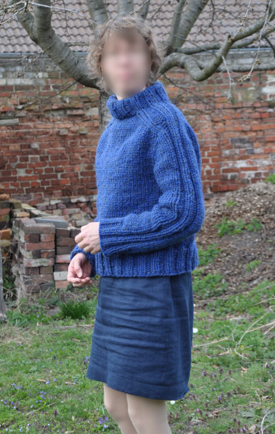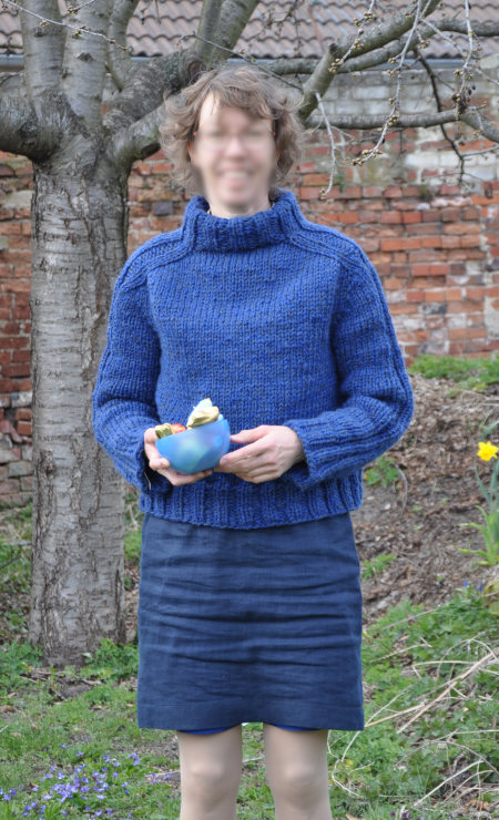 Das ist er also, der Outback-Pullover an der Frau. Er ist herrlich warm und die Farbe der Wolle gefällt mir außerordentlich gut. Getragen habe ich ihn auch schon ein paar Mal, aber jetzt ist der für drinnen zu warm und für draußen noch zu kalt. Macht nichts, in ein, zwei Monaten darf er wieder aus dem Schrank.