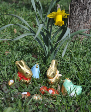 Heute ist Ostersonntag. Pünktlich zum Fest blühen die Osterglocken, und allerlei merkwürdiges Getier hat sich zwischen Veilchen und Gänseblümchen versteckt.