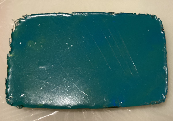 Schon viel besser. Hier sieht man aber, dass ich auf meiner Platte die Farbe nicht direkt anmischen kann. Die Farbe mischt sich nur an der Oberfläche, darunter sieht man die ursprünglich aufgetragene weiße Farbe als dicke Klekse.
