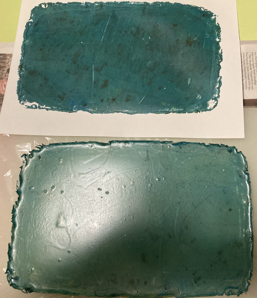 Inzwischen hatte ich mich mittels vieler Videos über Gelatineplattendruck beschult, also sollte es dieses Mal viel besser klappen.