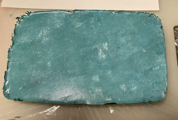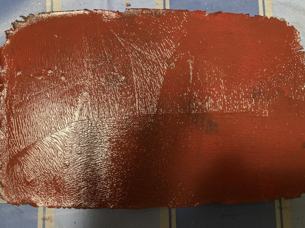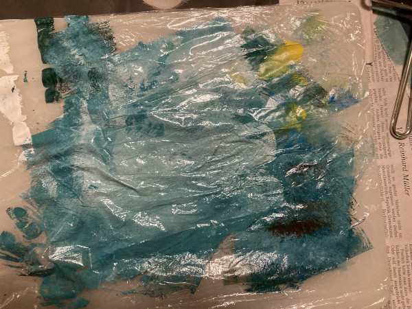Für den ersten Versuch hatte ich genug. Allerdings sah die Folie, auf der ich die Farbe ausgerollt hatte, sehr vielversprechend aus: