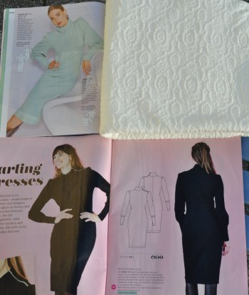 Es ist das weiße Rollkragenkleid geworden, der Hybrid-Schnitt aus dem Modell der Fashion Style und dem Kragen des Burda-Modells. Ich habe die Ärmelmanschette beim Zuschneiden auch gleich mal um 2cm verlängert, bei meinen langen Armen bin ich damit auf der sicheren Seite. Außerdem habe ich sie etwas schmaler gemacht, so dass sie das Handgelenk richtig umschließen werden.