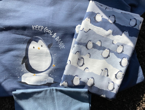Allerdings hat das Kleid in vorletzten Woche starke Konkurrenz bekommen. Ich war im Stoffhaus, um eins von den etwas teureren Nähgimmicks, die man sich nicht einfach so leistet, für die nähende Tochter zum Nikolaus zu kaufen. Da sah ich ihn. Leichter Sommersweat, ideal für einen warmen Pyjama. Als ich schließlich wieder vor dem Stoffhaus stand und sich der rote Nebel vor meinen Augen gelichtet hatte, war ich um 50€ ärmer und zwei Meter Stoff plus Bündchen reicher. Was soll ich sagen? Ich hatte drei Tage und Nächte in Folge gefroren, und es sind Pinguine drauf…