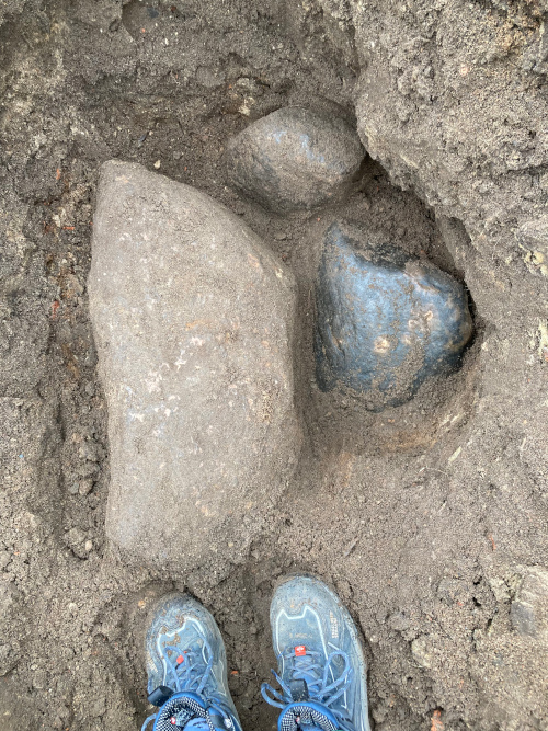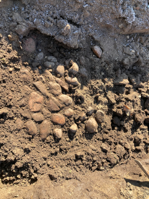 Wie gut, dass die Römer meines Wissens nicht im Spreewald gewesen sind. War wohl doch nur die untere Schicht des alten Pflasters. Auf dem Meter, den ich an diesem Vormittag schaffte, waren diese Steine:
