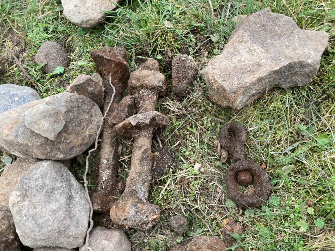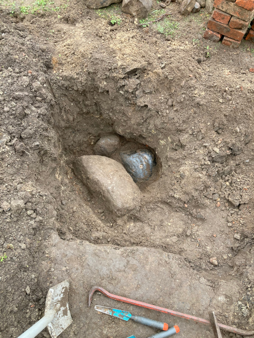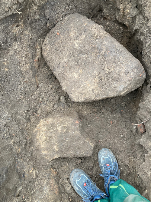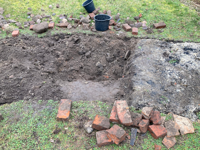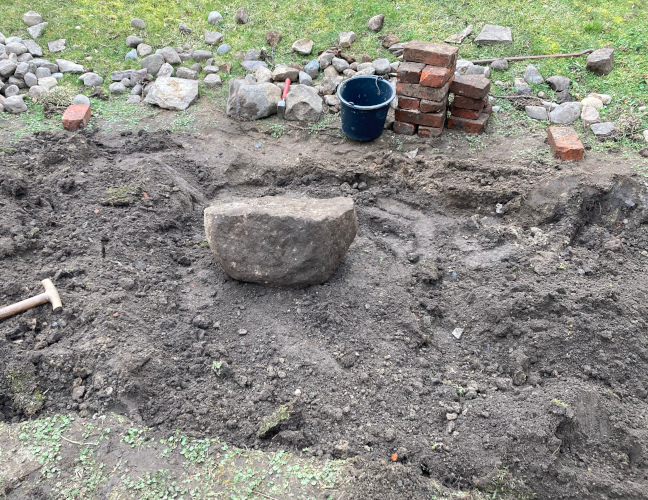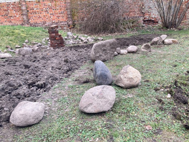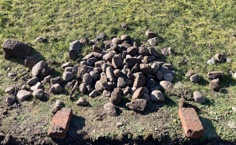 Sonstige Bilanz: 20 ganze Ziegelsteine, 11 halbe Ziegelsteine, eine Schubkarre voller Ziegel- und sonstigem Schutt, eine gemischte Auswahl an Feldsteinen, von Kieselstein bis 150kg (freundliche Schätzung) und ungefähr ein Pfund Engerlinge.