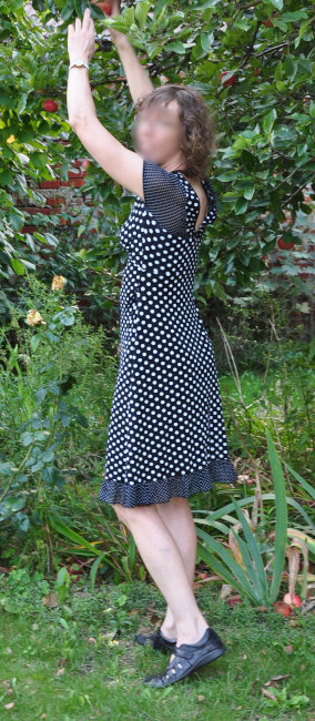Jetzt ist das Kleid bequem, ich kann die Arme gut heben und es macht statt eines Hängebauches eine schöne Figur.