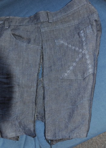 Dann habe ich mir die Helene-Shorts vorgenommen, die nach längerem Sitzen doch ganz schön im Schritt einschneidet. Ein bisschen Nachforschung auf meinem Blog ergab, dass ich dieses Problem schon einmal bei einer Hose mit mehr Weite im Bereich der Rückwärtigen Mitte lösen konnte. War mir glatt entfallen, ist ja auch schon ein paar Jahre her.