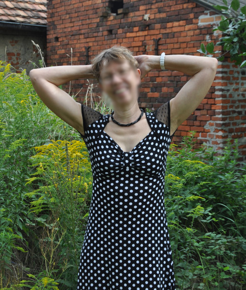 Als letztes habe ich mein Punktekleid (Fashion Style 6/2019 Nr 3) geändert. Ich habe es vor fast genau zwei Jahren genäht und so gut wie nie getragen, weil es eine kleine Raffung an der Seite hatte, die den Bauch so richtig unvorteilhaft modelliert hat. Außerdem hatte ich für die Ärmel keinen gepunkteten Tüll bekommen und statt dessen einen Chiffon verwendet. Tüll ist aber leicht elastisch, das war bei meinem Chiffon nicht der Fall. Dadurch war die Beweglichkeit in den Armen deutlich eingeschränkt.