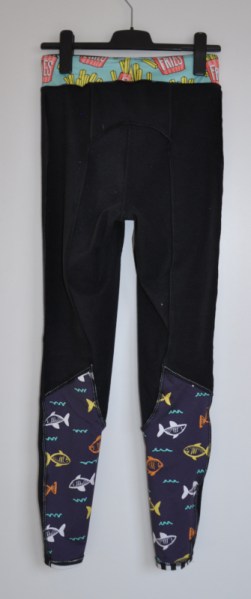 Jalie gibt für die Cora einen Stretch von 60% an. Mein Stoff hat aber nur 45% Elastizität, deshalb habe ich die Hose ungefähr 2 Nummern größer zugeschnitten. Ich habe auch die Hose in Hüfthöhe um 3cm verlängert, damit die Teilungsnaht auf der Rückseite nicht auf der stärksten Stelle meines Pos liegt, und ihn unvorteilhaft betont.