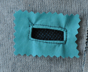 Passend zum Stil des Mantels habe ich mir Paspelknopflöcher spendiert und zwar nach dieser Anleitung, sie ist meiner Meinung nach die beste, die ich jemals gefunden habe. (links das fertige Knopfloch, in der Mitte die eingefasste Öffung im Besatz, rechts die Rückseite des Knopfloches).