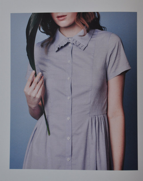 Saraste ist auch süß – wobei ich den Schnitt nicht kannte, aber die Raffung bei glatter Knopfleiste ist sehr hübsch. Ich hätte bei weißgründigem Muster eigentlich etwas Sorge, dass es nachthemdig werden könnte, aber ich glaube mit einem anständigen Hemdkragen kriegt es den richtigen Dreh als Oberbekleidung!
