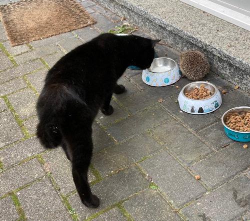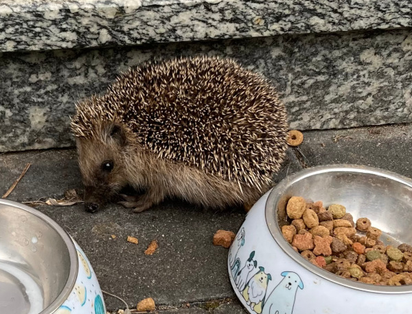 Im Sommer unterbinde ich das, indem ich das Futter zur Nacht auf den Tisch stelle. Die Igel sollen sich selber ihr Futter suchen, in einem Bio-Garten gibt es Würmer und Insektenlarven zu Hauf. Jetzt im Spätherbst streue ich die Reste des Tages-Futters für die Igel aus, entfernt von der Futterstelle der Katzen, denn Igel haben abscheuliche Tischmanieren. Ich darf jeden Tag ihre Hinterlassenschaften von den Steinen entfernen, das möchte ich meinen Katzen nicht zumuten. Natürlich weiß ich, dass Katzenfutter für Igel nicht artgerecht ist, es enthält zu wenig Proteine, aber für artgerechte Fütterung müsste ich ein katzensicheres Futterhaus aufstellen. Im vergangenen Jahr hatte ich das gemacht, mit dem Resultat, dass irgend ein anderes Tier den Boden um das Futterhaus komplett umgegraben hat.