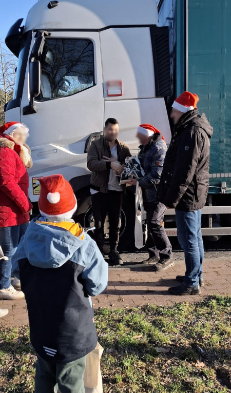 Am ersten Feiertag wurden diese Beutel dann an Trucker, die an der Autobahn über die Feiertage auf den Rastplätzen festsitzen, von einigen Club-Mitgliedern verteilt. Ein bisschen Weihnachten für die gestrandeten Fahrer, die über die Feiertage nicht weiterfahren dürfen.