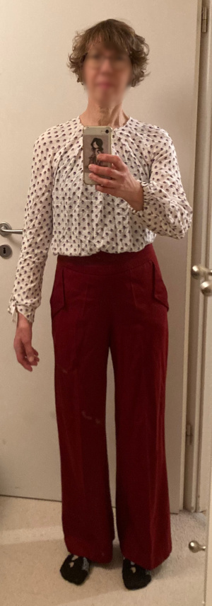 1. Ich finde das Shirt ganz hübsch, steht dir. Der gerade Ärmel gefällt mir besser als mit Gummizug. Ich mag gerne Trompetenärmel, egal ob nur leicht ausgestellt nach unten oder sehr weit und separat angenäht. Vielleicht wäre das für die Armlänge eine Variante, falls du noch Stoff übrig hast. Ansonsten trägt man ja auch viel 3/4-Ärmel. Der Ausschnitt wäre mir zu hoch. Aber auch das ist natürlich Geschmacksache.