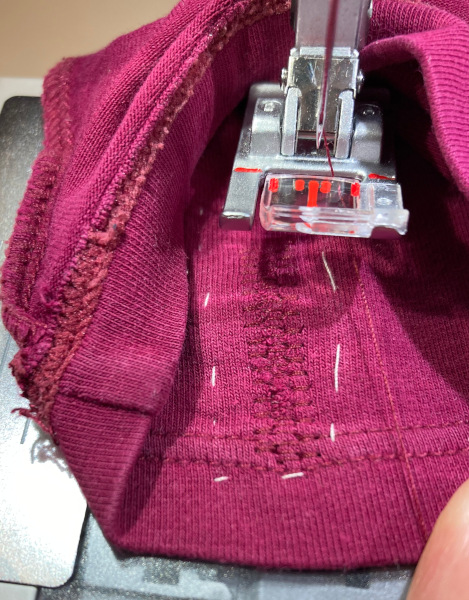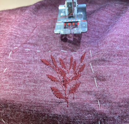 und einer kleinen Reihe Blätter für den Rolli, weil ich bei dem erst einmal den Riss mit einer Reihe Dreifach-Zick-Zack geschlossen hatte. Stabilisiert habe ich Stoffe mit wasserlöslichem Stickvlies, so dass nach der Wäsche nur noch die Stickerei übrig ist.