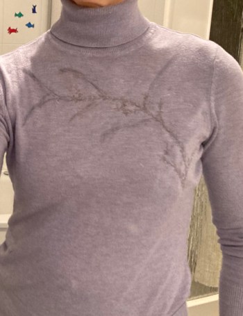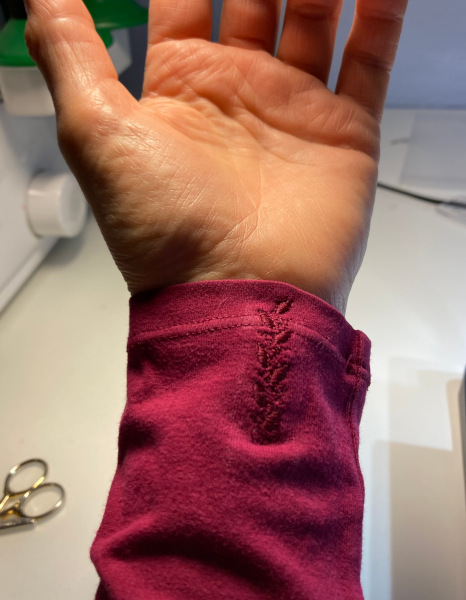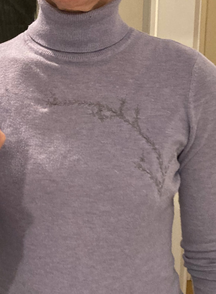 Nach der Wäsche ist die Ranke relativ diskret und gefällt mir gut. Pulli gerettet.