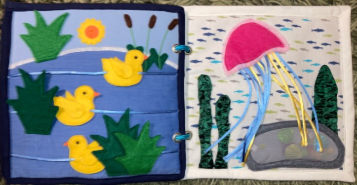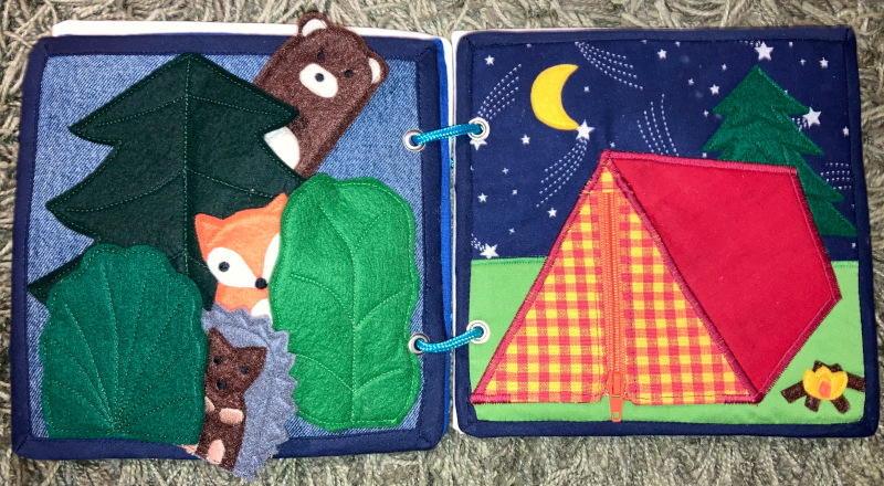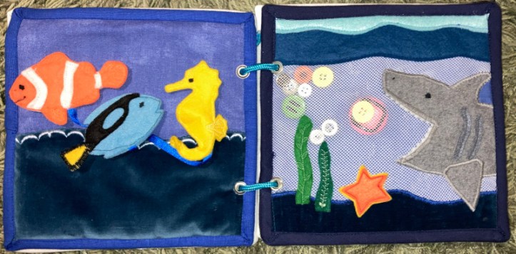 Quiet Books sind Beschäftigungsbücher für Kinder, die aus Stoff bestehen. Ob sie „Quiet Book“ heißen, weil sie keine nervigen Geräusche machen oder weil ein Kind damit eine Weile „quiet“, also still ist, entzieht sich meiner Kenntnis. Mir ist aufgefallen, dass sie anscheinend bei Mormonen sehr beliebt sind, zumindest habe ich auf Seiten dieser Community die besten Anleitungen und Beispiele gefunden ( leider sind diese Seiten inzwischen gelöscht). Das wundert mich gar nicht. Als Teenager hatte ich einmal in den USA die Gelegenheit, einen mormonischen Gottesdienst zu besuchen. Inklusive Sonntagsschule hat die Veranstaltung drei Stunden gedauert (wenn ich mich richtig erinnere) und die Familien waren komplett erscheinen. Irgendwie muss man kleine Kinder da ruhig bekommen und bei Laune halten. Und da ist so ein Quiet Book eine feine Sache.