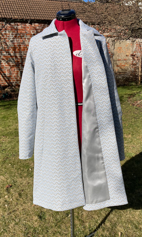 Mittwoch hatte ich dann endlich Zeit und auch die Motivation, an das Mante-UFO zu gehen. Hier habe ich das Ziel nicht erreicht, ich habe zwar das Futter genäht und den Mantel gesäumt, aber die Ärmel sind noch nicht fertig und es fehlen auch noch die Knöpfe. Ich hatte keine passenden im Fundus und habe erst gestern welche kaufen können.