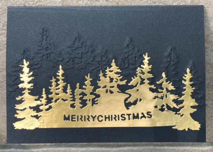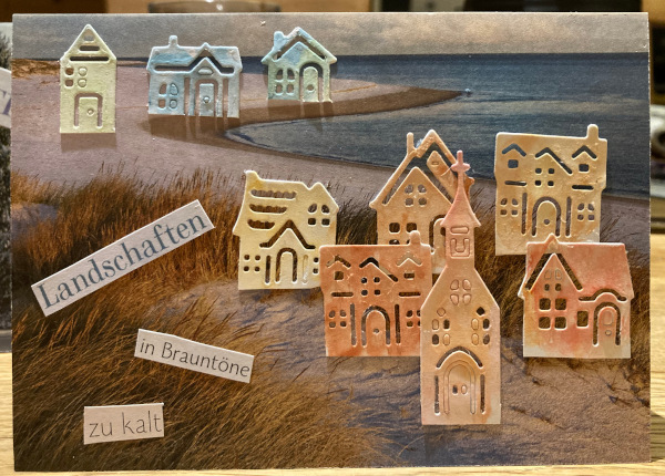 Ich habe ausgenutzt, dass man mit den Stanzen auch prägen kann. Das Goldpapier hat gerade so für eine kleine Serie gereicht. Ich fühle mich jetzt schon merkwürdig, wenn ich Weihnachtskarten mache, wie wird das nur im Juli sein?