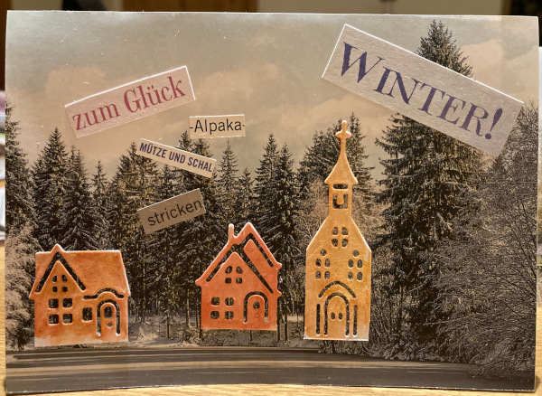 Dieses Jahr habe ich mir ein Jahresprojekt vorgenommen: Ich will jeden Monat mindestens vier Karten basteln und an die Geburtstagskinder in der Familie und im Freundeskreis schicken. Außerdem lege ich mir eine Sammlung mit Weihnachtskarten zu, denn im Dezember ist für’s Kartenbasteln keine Zeit. Für letzteres habe ich den 52 Christmas Card Throwdown als Inspiriationsquelle entdeckt. Für ersteres habe ich mich erstmal von Birgit ispirieren lassen. Ihre Collagen gefielen mir so gut, dass mich ich auch daran versucht habe.