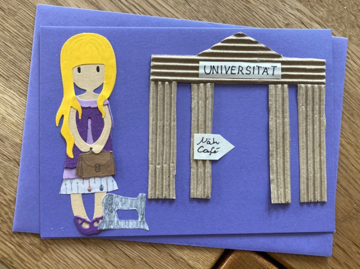 Mit dieser Karte versuche ich, die Empfängerin zum Nähen zu verführen.