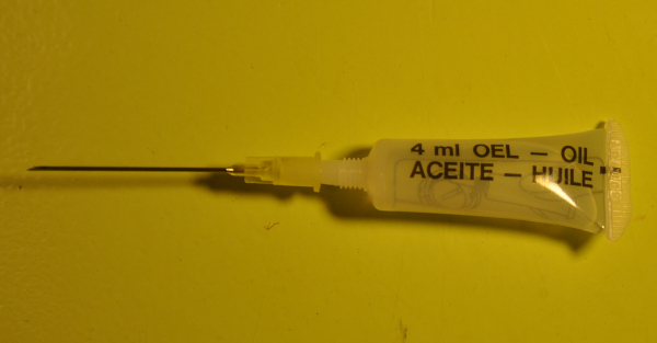 Dann dreht man behutsam das Handrad und schaut einmal, wo sich überall etwas bewegt. An diese Stellen darf Öl. Wenn das alte Öl bereits etwas gelblich oder bräunlich aussieht, ist es verharzt und man sollte es so gut es geht abwischen. Ich habe dafür Wattestäbchen und Isopropanol verwendet, in den Schrauberforen nehmen sie Petroleum. Dann wird alles so lange mit Öl beträufelt, bis Metallteile mühelos übereinander gleiten. Runtertropfen sollte dabei aber bitte nichts! Das Öl muss unbedingt farblos und für Nähmaschinen geeignet sein. So eine kleine Tube kostet ein paar Euro und die bekommt Ihr in Eurem Fachgeschäft. Bitte nehmt nicht irgend ein Öl aus dem Baumarkt, da spart Ihr an der falschen Stelle. Um an alle Stellen zu kommen, ist eine dicke Kanüle, die man auf die Öltube stecken kann, sehr hilfreich.