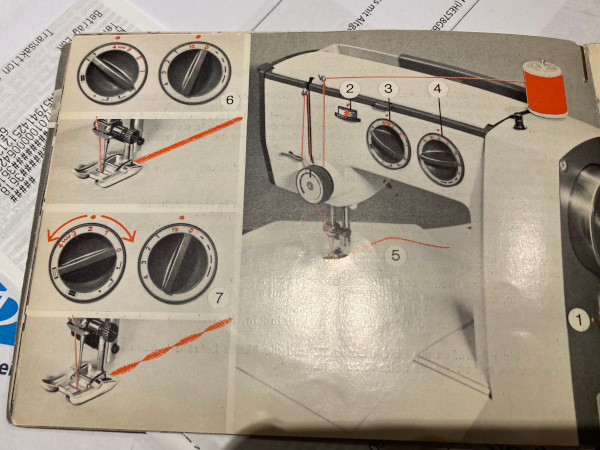 Meine kleine Lotus ist in einem sehr gepflegten Zustand, nur vom Fadenspannungsregler ist die Beschriftung abgefallen, aber das lässt sich mühelos kleben. Trotzdem möchte ich sie beim Reparaturdienst einmal durchchecken lassen, damit sie mich nicht auf der AnNäherung im Stich lässt. Mein Techniker lacht, als ich frage, ob ich sie bringen und Ende der Woche wieder abholen kann. Er hat frühestens in vier Wochen einen Termin.