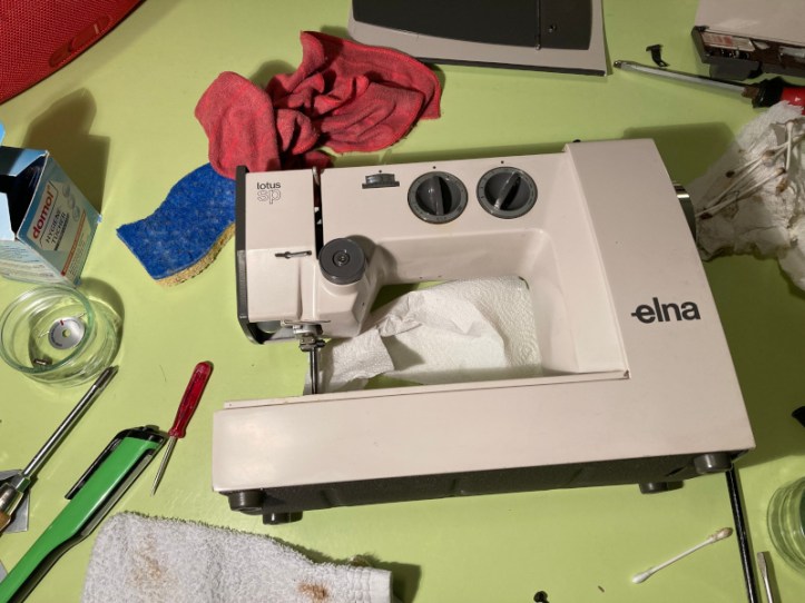 Bei Carola hatte ich bereits die Elna Lotus Reisenähmaschine gesehen, die wollte ich auch haben. Tatsächlich habe ich auch eine auf Kleinanzeigen gefunden.