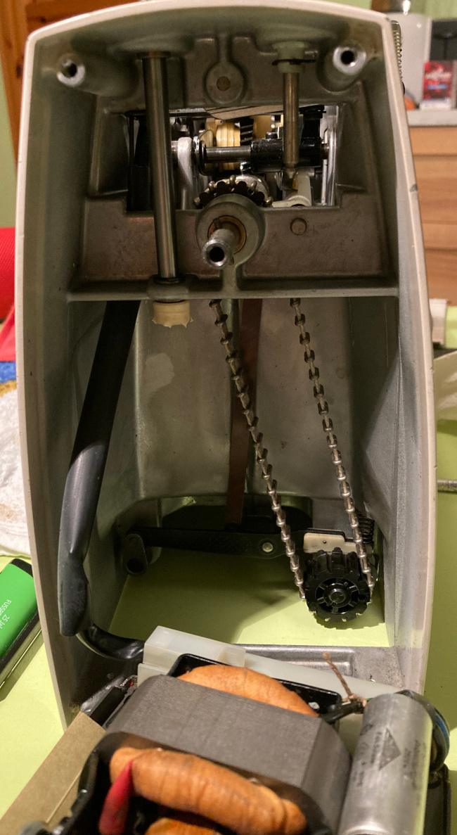 - Probiert das bitte nicht mit einer modernen Nähmaschine aus. Die sind kompliziert und möchten besonderes Werkzeug haben. Außerdem haben sie gerne Schrauben oder Unterlegscheiben oder sonstwas an versteckten Stellen, an die man mit dem üblichen Schraubenzieher aus dem Haushalts-Werkzeugkasten nicht heran kommt. Und Ihr wollt ja sicherlich nicht am Ende des Tages die überzähligen Schrauben einpacken und kleinlaut den Reparatur-Service aufsuchen.