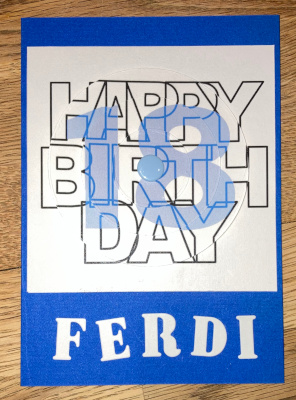 Die letzte Karte im März ging an mein eines Patenkind, das 18 geworden ist. Die tolle Idee für die Karte ist nicht von mir, sondern von Angela alias der Schnipselschnecke. Sie stellt den Schriftzug für den „runden“ Geburtstag mit Anleitung zur Verfügung. Ich habe dann noch mit GIMP die 18 zugefügt. Als Mittelpunkt habe ich einen farblich passenden Plastik-Druckknopf verwendet.